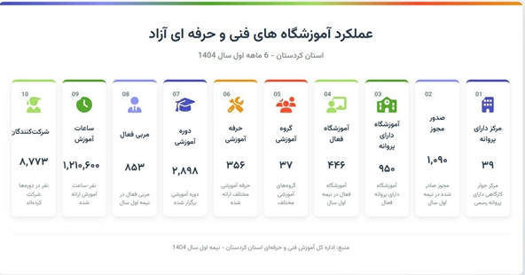 اینفوگرافی.. کپی لینک کوتاه عملکرد در شش ماهه نخست سال ۱۴۰۴ بخش غیر دولتی آموزشهای مهارتی استان کردستان گروه خبری : اخبار عمومی کد خبر : 126337 کلمات کلیدی